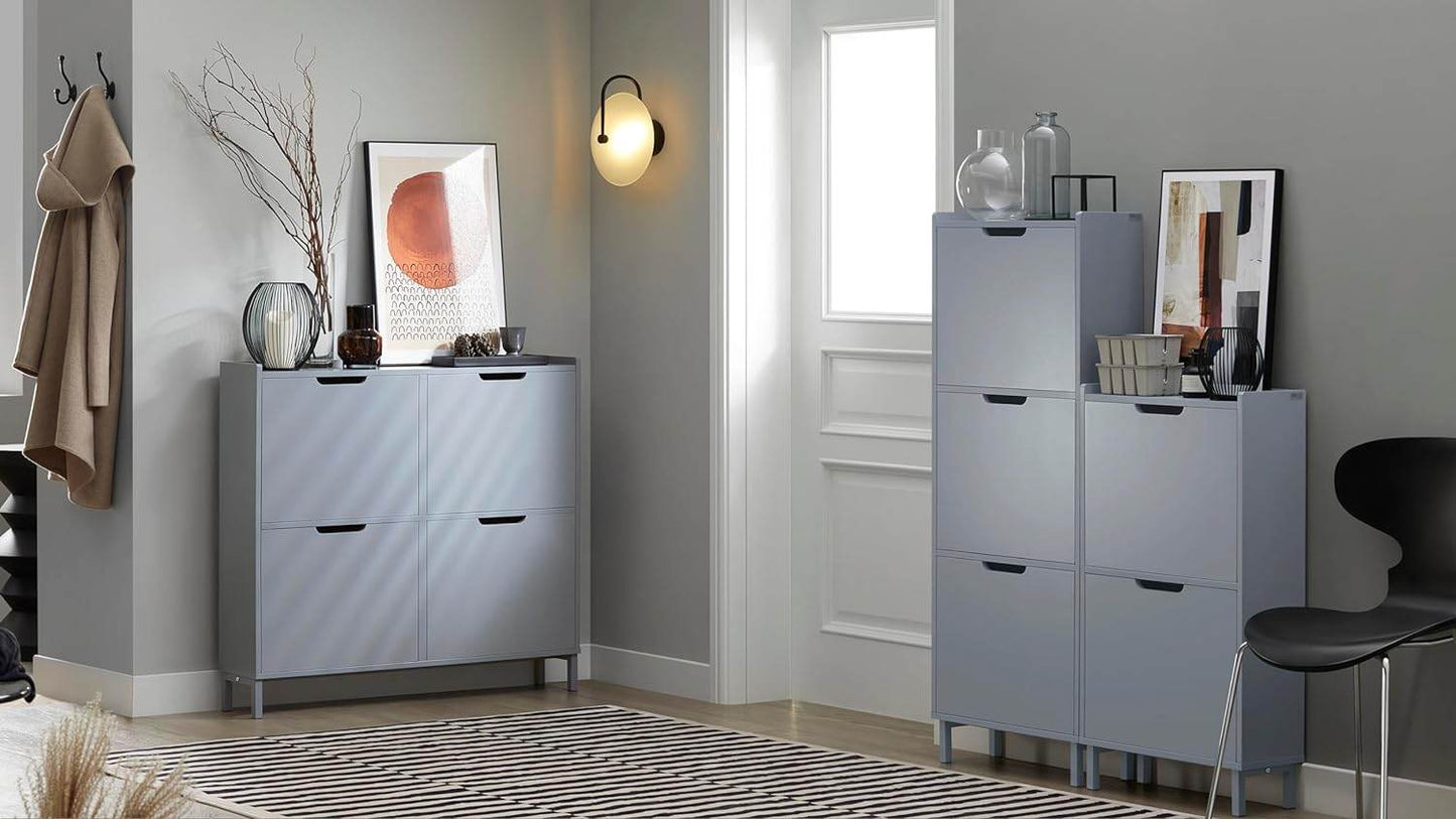 Durch vier Kippfächer mit 8 Ablageflächen im Inneren, können Sie Ihre Schuhe ordentlich verstauen. Die Höhe der Schuhfächer können durch herausnehmbare Böden verstellt werden, somit haben auch höhere Schuhe hier Platz.