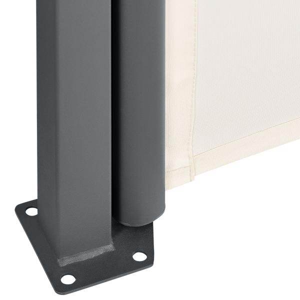 Da die Seitenmarkise in einer Kassette aufgerollt ist, können Sie den Stoff einfach auf die Länge Ihrer Wahl ausziehen. So haben Sie die Möglichkeit, Ihre Markise individuell an Ihre Bedürfnisse anzupassen, um Terrasse oder Garten vor Sonne und Blicken zu schützen. Insgesamt weist die moderne Stellwand eine Höhe von 1,60 m und eine maximale Länge von 3 m auf.
