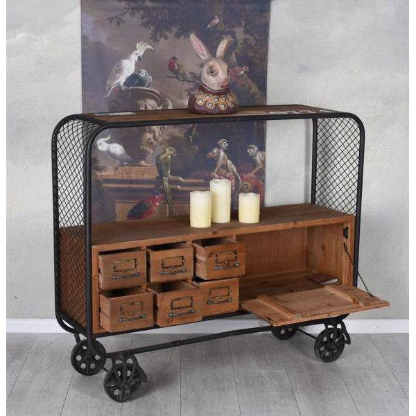 SIDEBOARD AUF RÄDERN FABRIK MÖBEL ANRICHTE LOFT REGAL SERVIERWAGEN RETRO