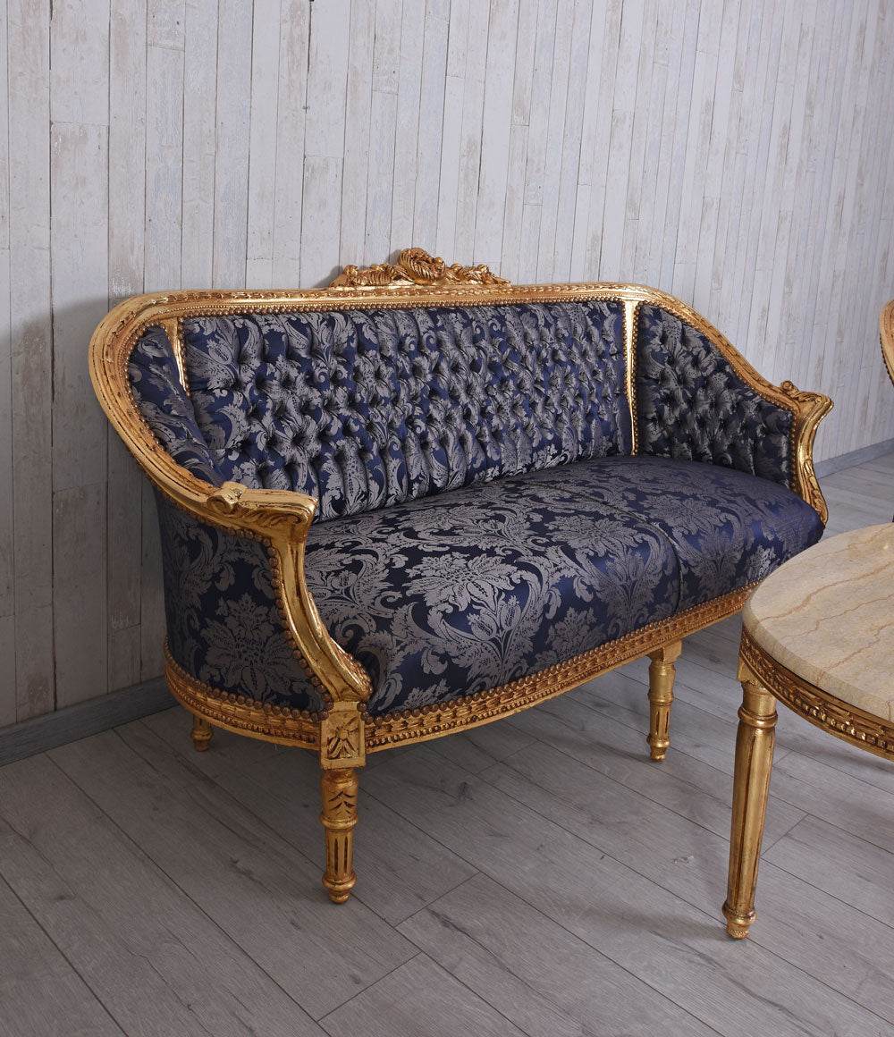 Ein Sofa & zwei Sessel & passender Couchtisch mit aufgelegter Marmorplatte im Rokoko Stil.