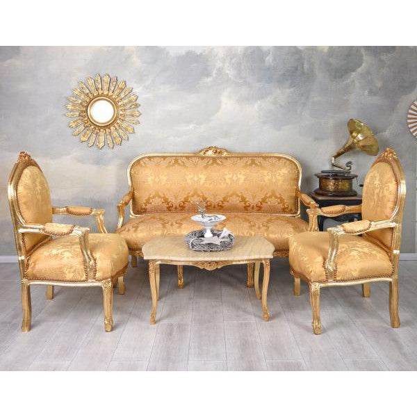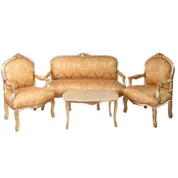 SITZGRUPPE BAROCK SALONGARNITUR SOFA & ZWEI SESSEL TISCH