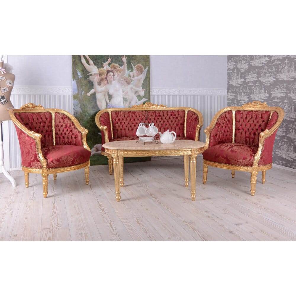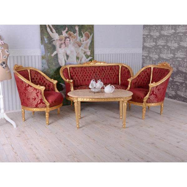 SITZGRUPPE BAROCK SALONGARNITUR SOFA & ZWEI SESSEL TISCH MARMORPLATTE