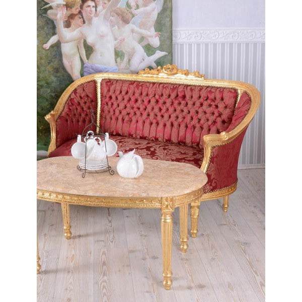 Ein Sofa & zwei Sessel & passender Couchtisch mit aufgelegter Marmorplatte im Rokoko Stil.