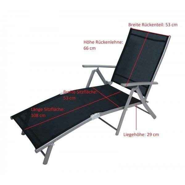 - Das Rückenteil ist 7-fach verstellbar. Somit ist eine Verwendung als klassische Sonnenliege mit stark geneigtem Rückenteil oder auch als Deckchair, zum Lesen oder Entspannen. Zur Erhöhung des Sitzkomforts sind seitlich Armlehnen angebracht.