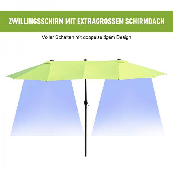 Sonnenschirm Gartenschirm Doppelsonnenschirm mit Handkurbel Grün Oval
