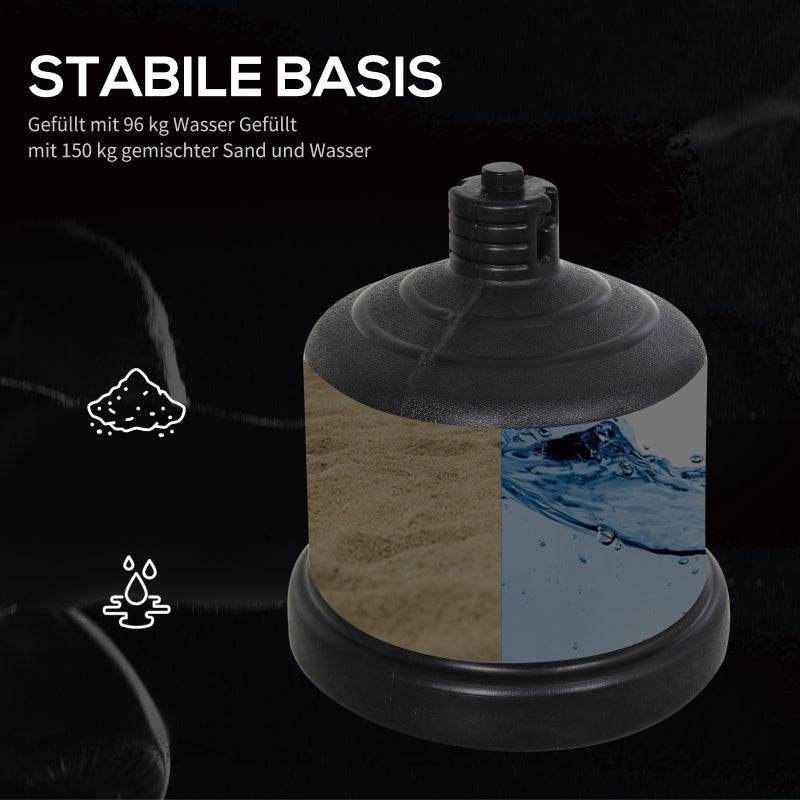- Robuster Standfuß ist wahlweise mit Sand oder Wasser befüllbar