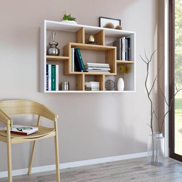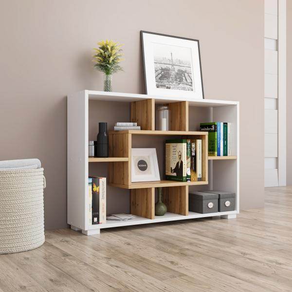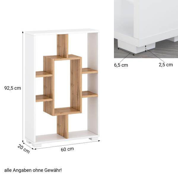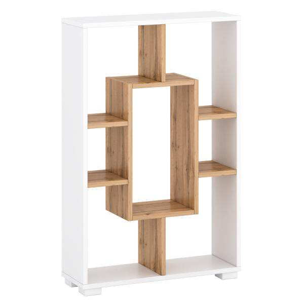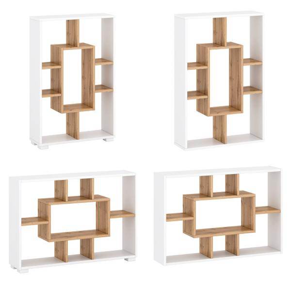 - Regal mit 4 möglichen Varianten zur Nutzung aus Holz in Eichenoptik, weiß