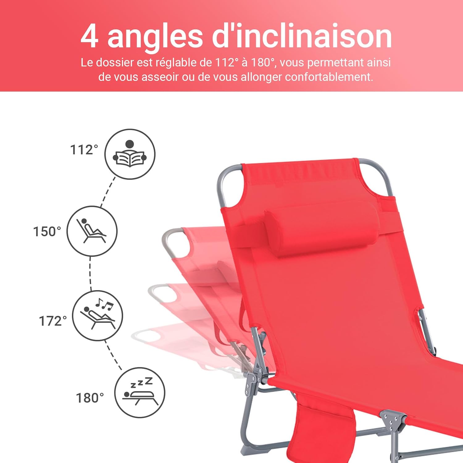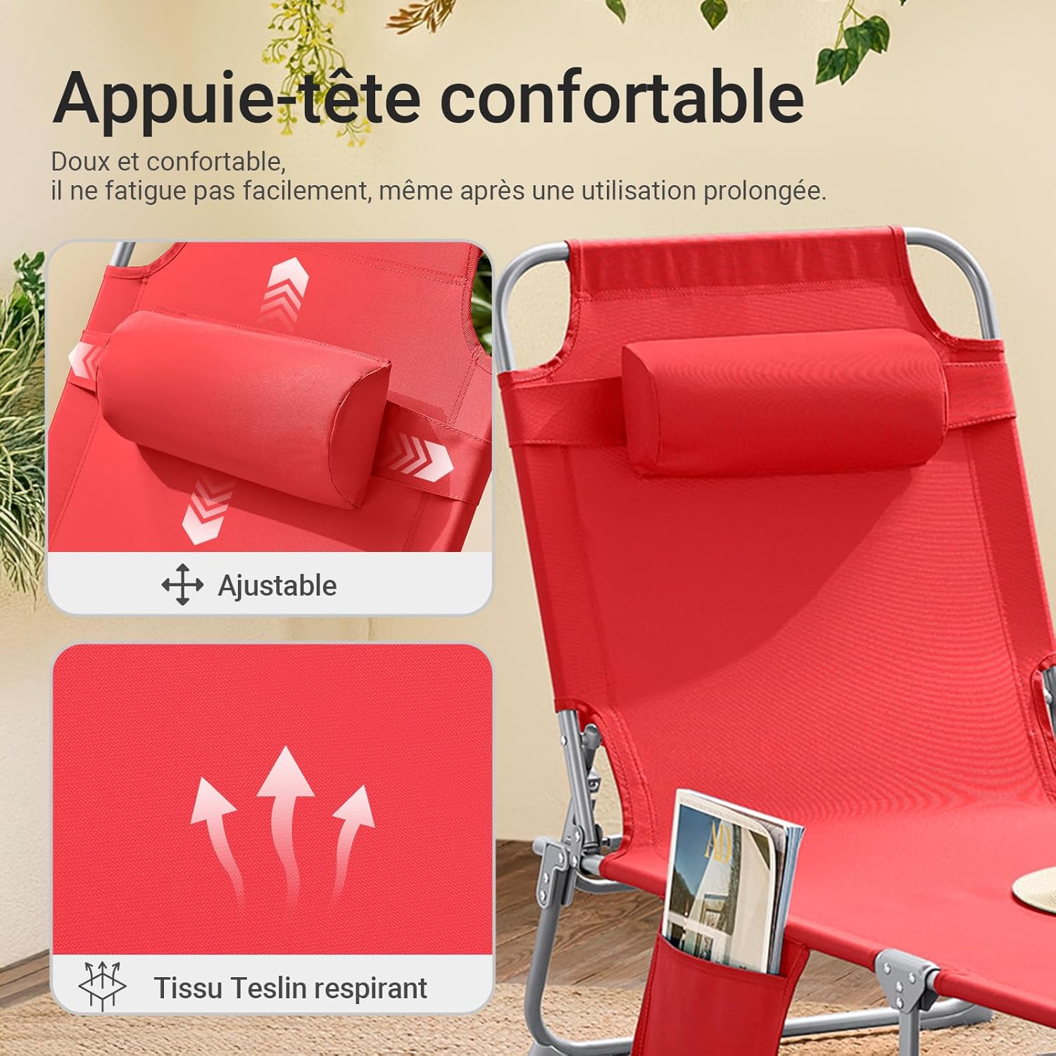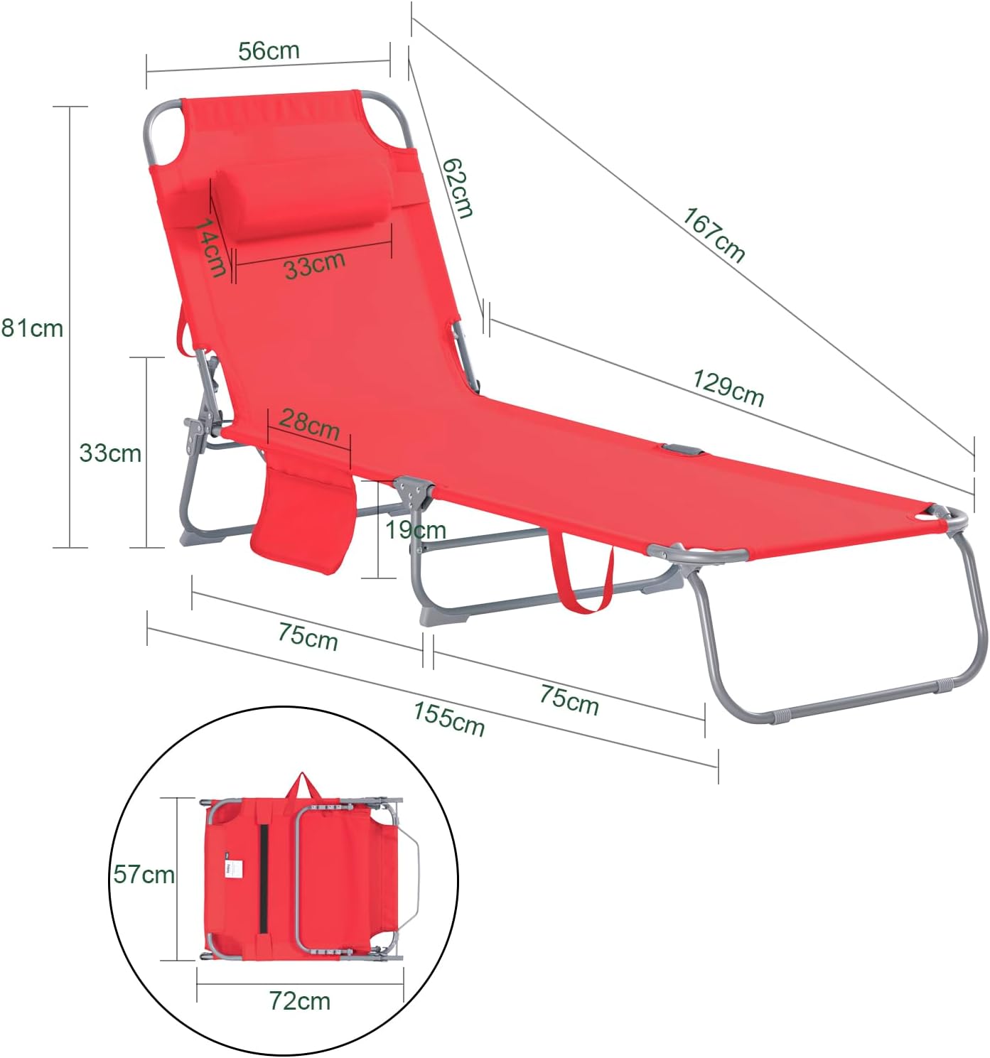 Strandliege | Gartenliege | Sonnenliege klappbar | Rot | OGS35-R