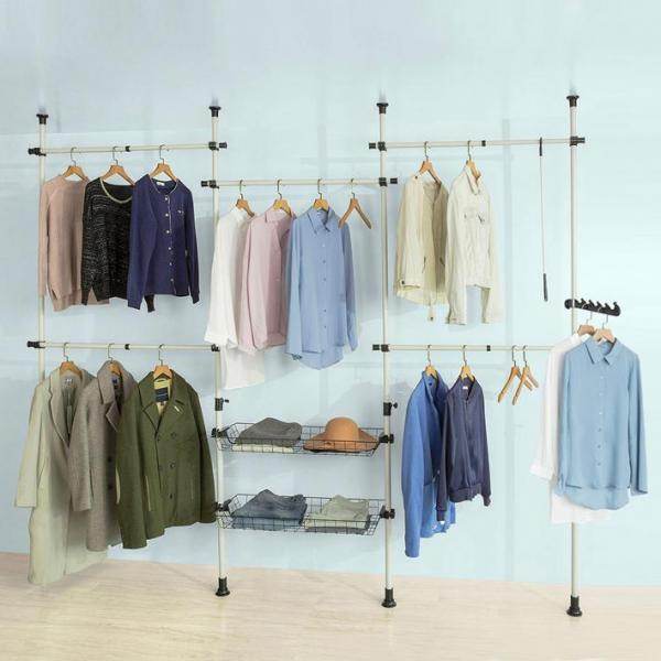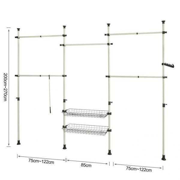 - Danke der 4 stufenlos verstellbaren Kleiderstangen und 2 Körben bietet dieses System viel Platz für Kleider. Mäntel. Oberteile. Hosen oder Hemden.