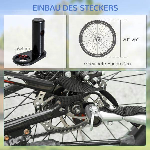 - Der Anhänger ist geeignet für 20" bis 26" Fahrräder.