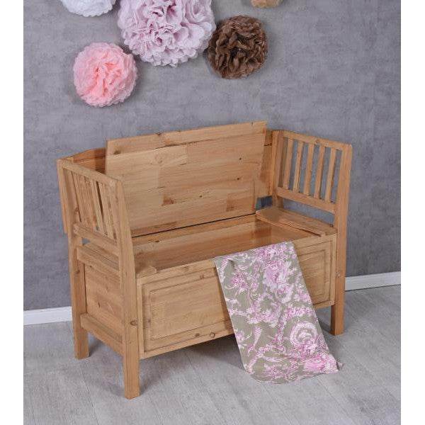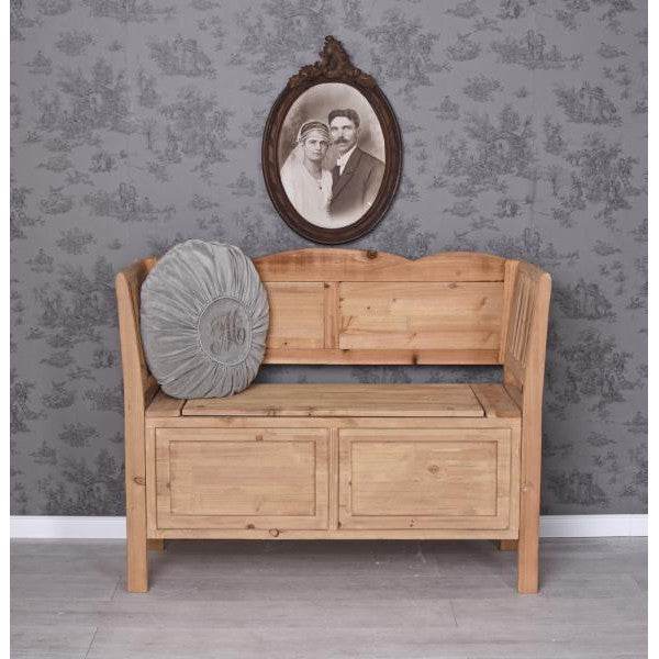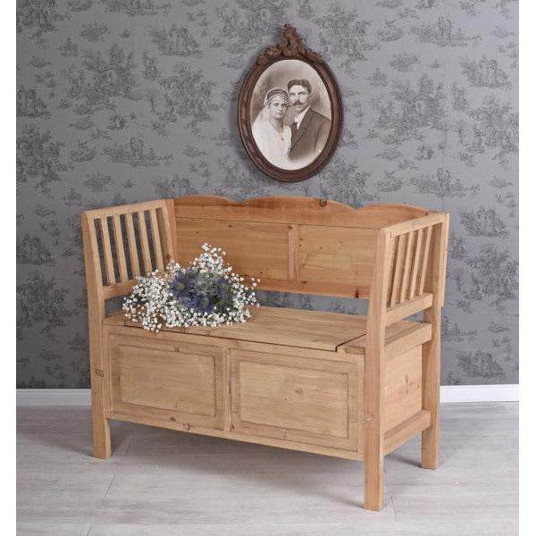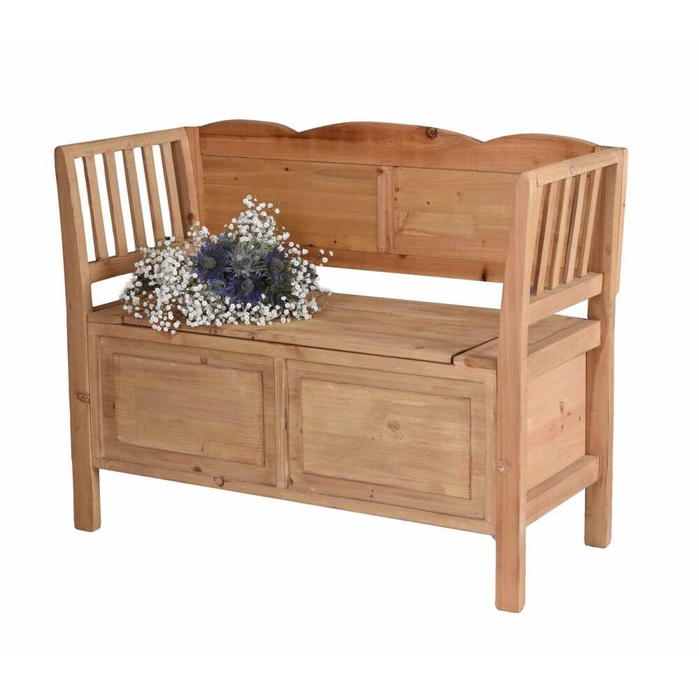 Material: altes Holz & praktischer Stauraum unter der aufklappbaren Sitzfläche.