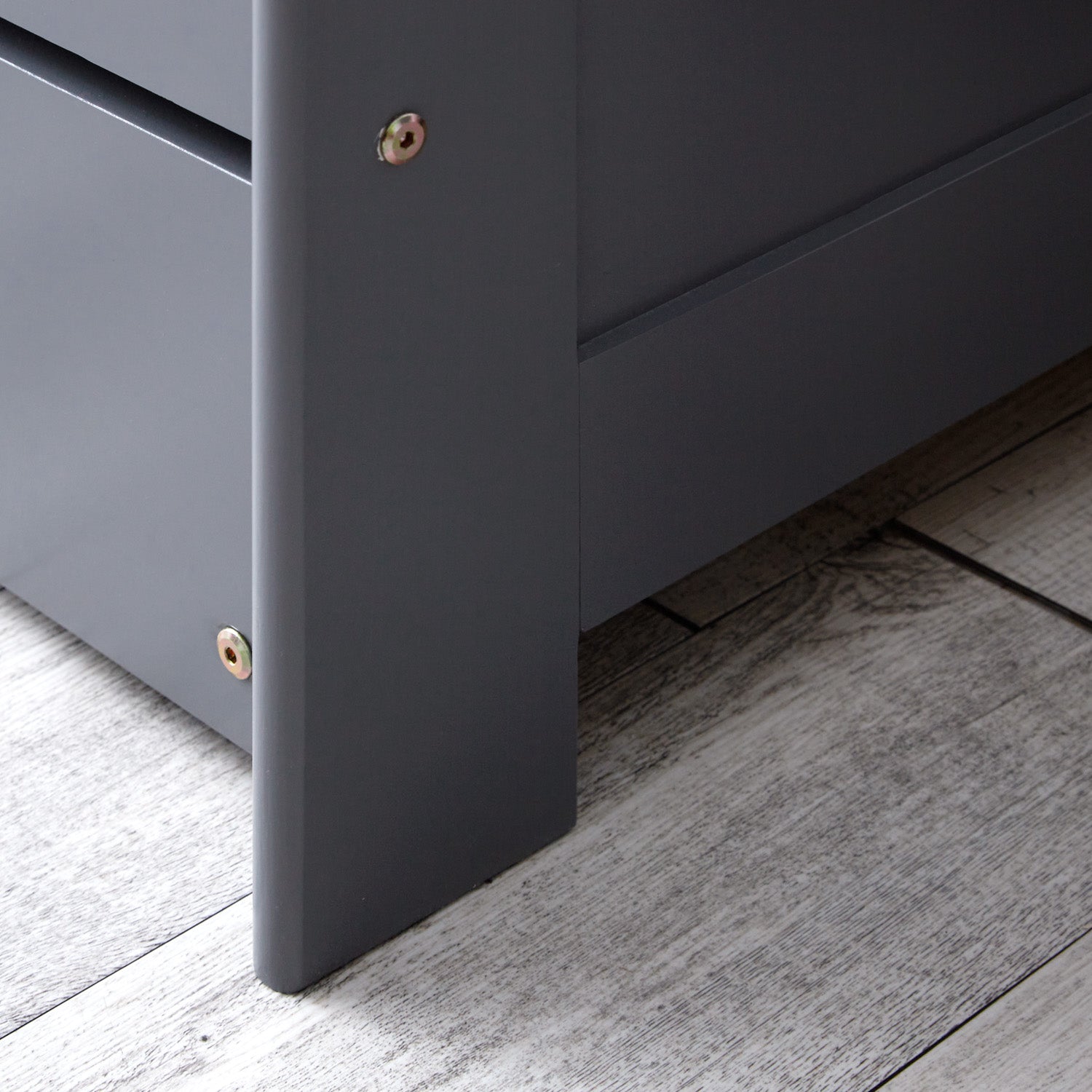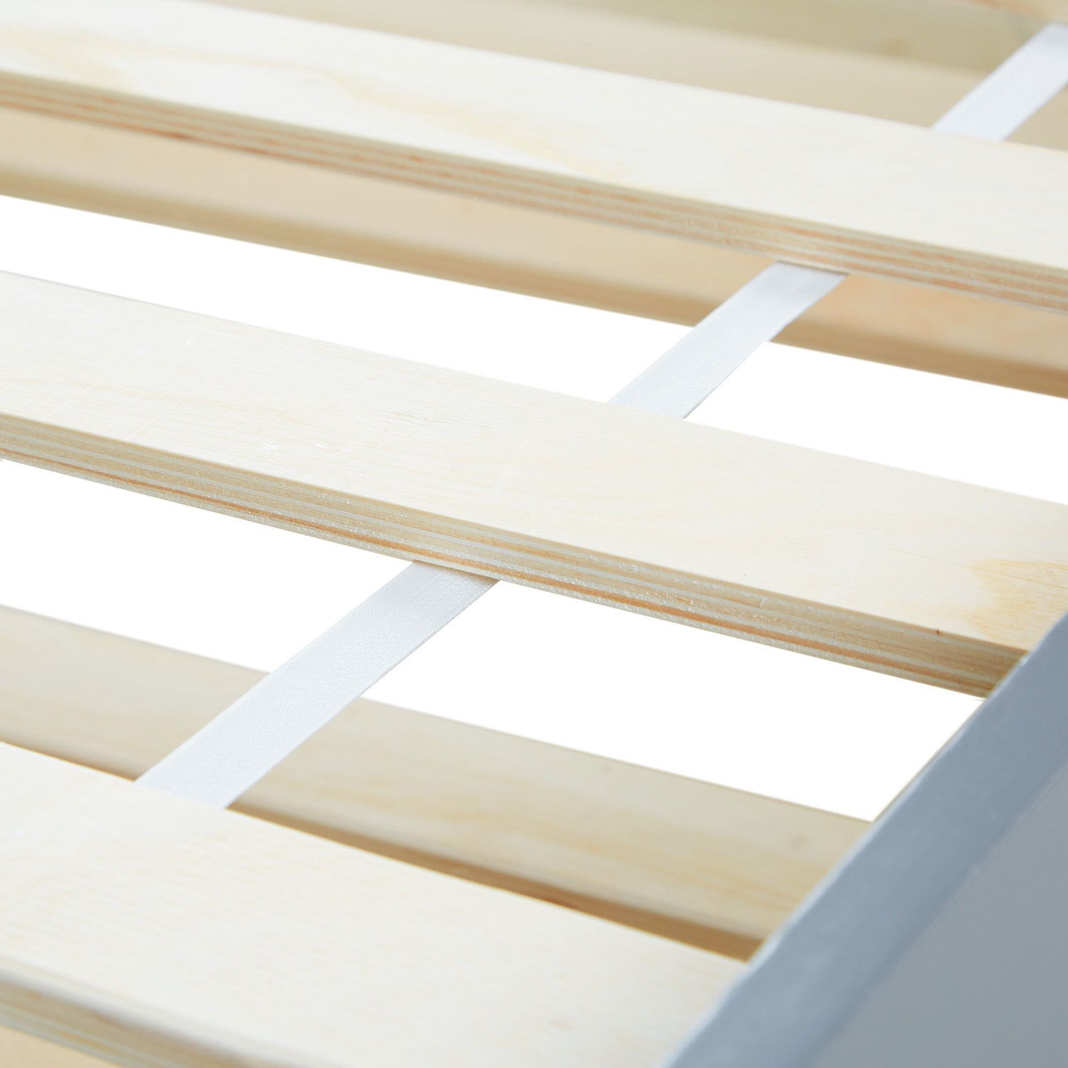 - Bettgestell aus massivem Kiefernholz, grau lackiert