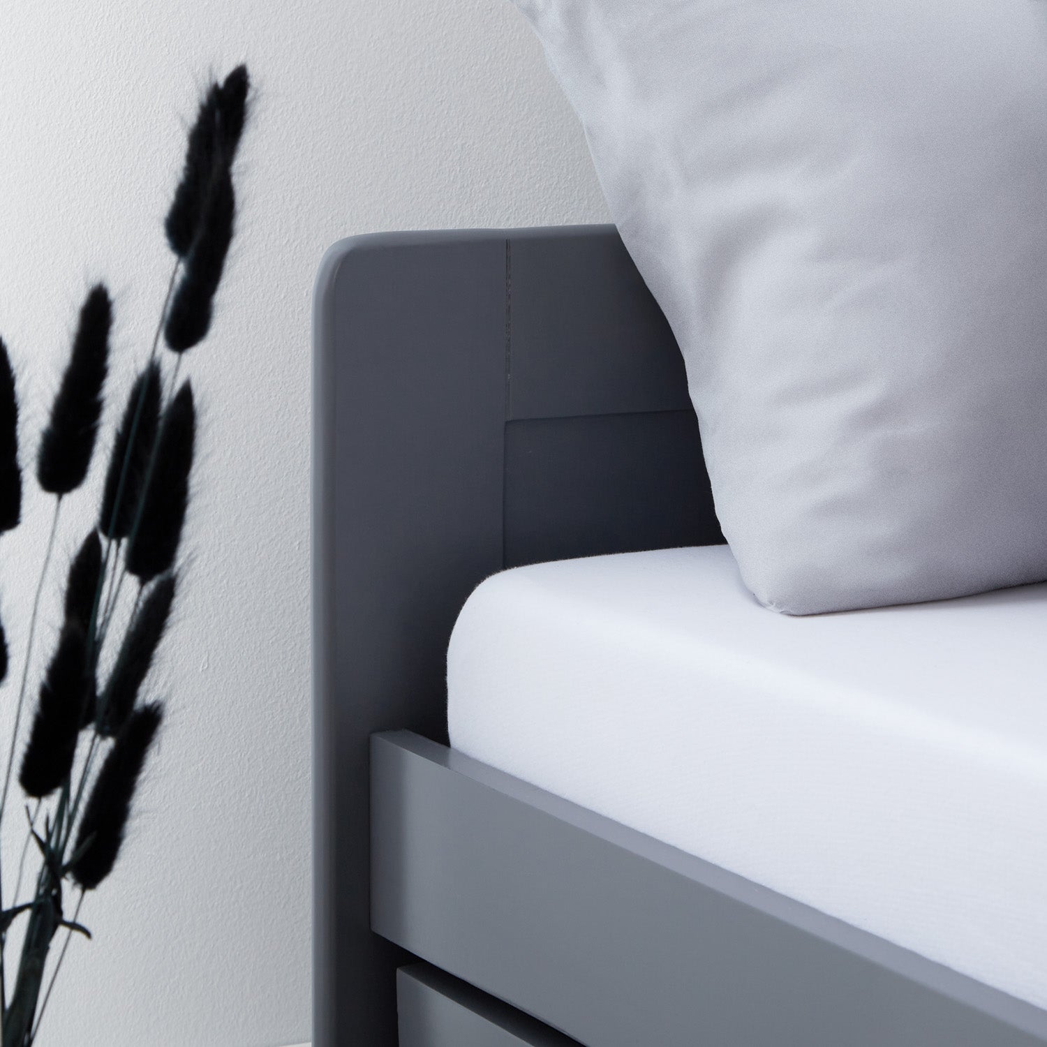 - Holzbettrahmen in 90x200 cm mit zusätzlicher Liegefläche, grau