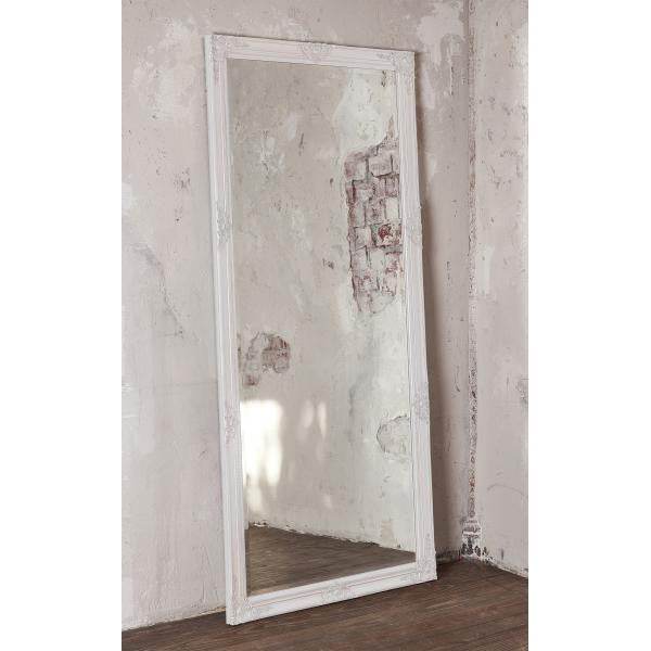 Wandspiegel Holz weiss 80x180cm mit Facettenschliff im Glas Antik Barock Stil
