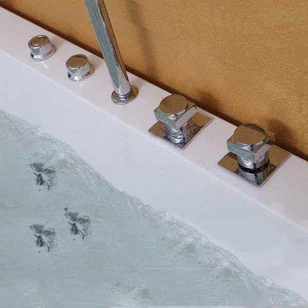 Wir verbauen in unseren Whirlpool Badewannen keine NO-NAME Pumpen, bei welchen ggf. schon nach kurzer Zeit Probleme auftreten. Die verbauten Premium Whirlpoolpumpen von der Marke LX werden auf dem Trägerrahmen schallentkoppelt montiert. Da in diesen Pumpen bürstenfreie Motoren verbaut sind, haben diese eine theoretisch unendliche Lebensdauer und eine hohe Pumpleistung. Die Mischarmaturen verfügen über Griffstücke aus verchromtem Messing und nicht über Griffstücke aus einfachem Kunststoff und bieten daher eine lange Lebensdauer. -